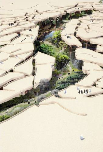 Британская компания Heatherwick Studio представила свой проект трансформации 125 тысяч кв.м. паркового пространства в самом центре Абу-Даби (Объединённые Арабские Эмираты), которые превратятся в многофункциональный оазис.