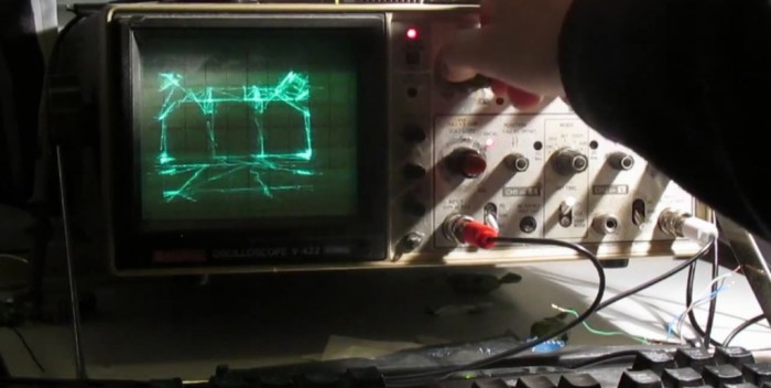 На первый взгляд, задача кажется неподъёмной: как можно отобразить игру на монохромном экране, который принимает аналоговый сигнал? Ведь осциллограф с электронно-лучевой трубкой предназначен для визуализации волн, то есть амплитудных и временных параметров электрического сигнала, подаваемого на вход прибора. Тем не менее, инженер сумел найти решение (видео).