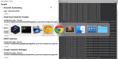 За это следует благодарить программиста Кеннета Охенберга (Kenneth Auchenberg). Он взял DevTools из репозитория и «упаковал» код в приложение, используя среду node-webkit. Более того, он ещё и сделал симпатичный дизайн заставки в «материальном» стиле с помощью компонентов AngularJS Material.